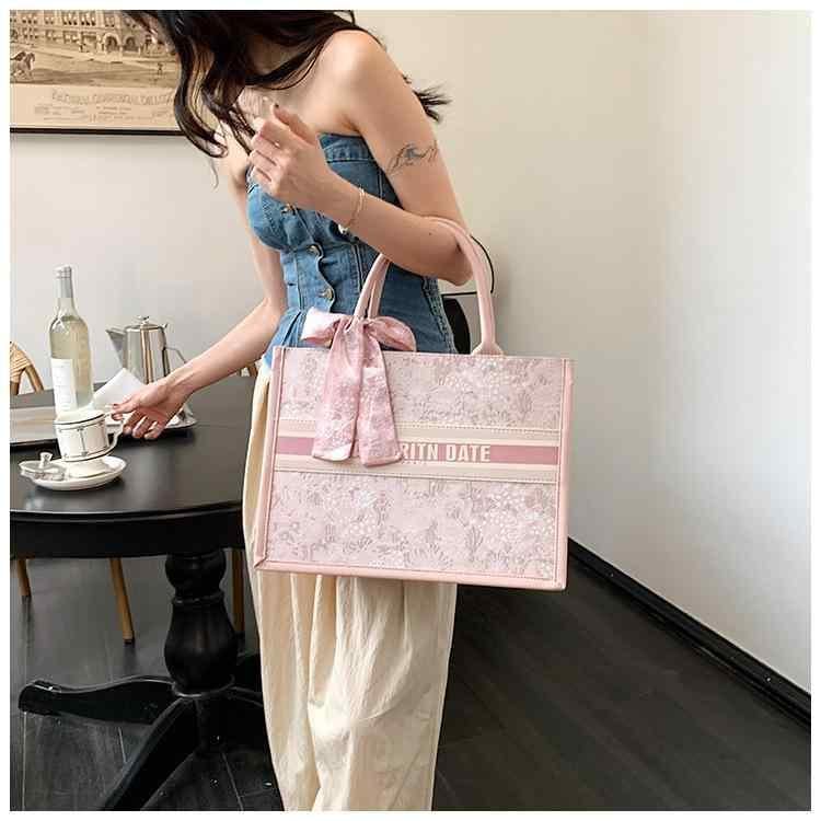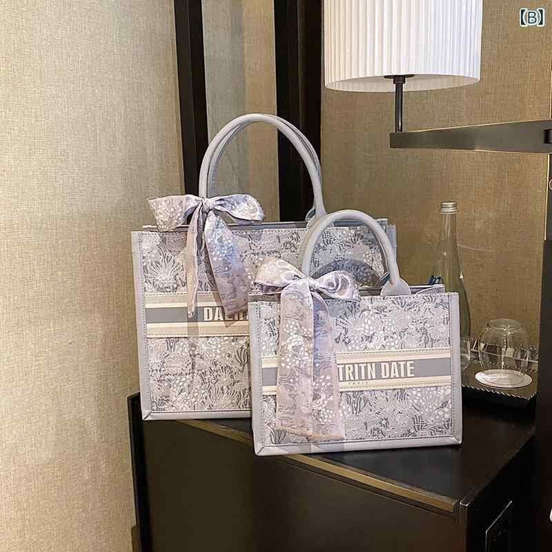 トートバッグ レディース 大容量 刺繡 キャンバス 通勤 通学 ハンドバッグ ショルダーバッグ 斜め掛け カジュアル 横型 スクエア 個性的