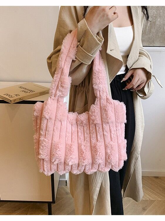 トートバッグ レディース もこもこ ファー かわいい カジュアル デイリーユース ショルダーバッグ ハンドバッグ 大容量 横型スクエア マグネット開閉 内ポケット付き ソフト素材