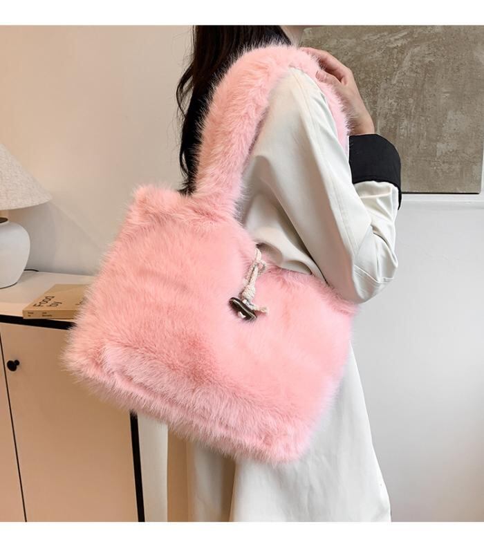 バッグ レディース 冬用 もこもこ ファー素材 トートバッグ ショルダーバッグ 大容量 おしゃれ かわいい 手提げ マグネット開閉 横型 スクエア やわらか デイリーユース ピンク ホワイト ブラウン グレー ブラック