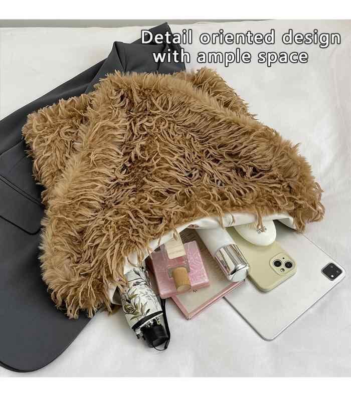 バッグ レディース 大容量 フリンジ フェイクファー ショルダーバッグ 斜め掛け 肩掛け 秋冬 デイリーユース 普段使い ふわふわ 毛足長め ファー素材 トートバッグ 横型 マグネット開閉 スマホポケット付き