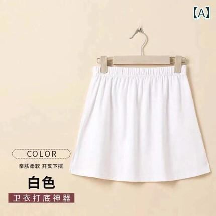 スカート レディース レイヤード 付け裾 インナー 綿 厚手 ミニ丈 Aライン お尻隠し 体型カバー 無地 ゆったりサイズ ホワイト ブラック グレー 春秋冬