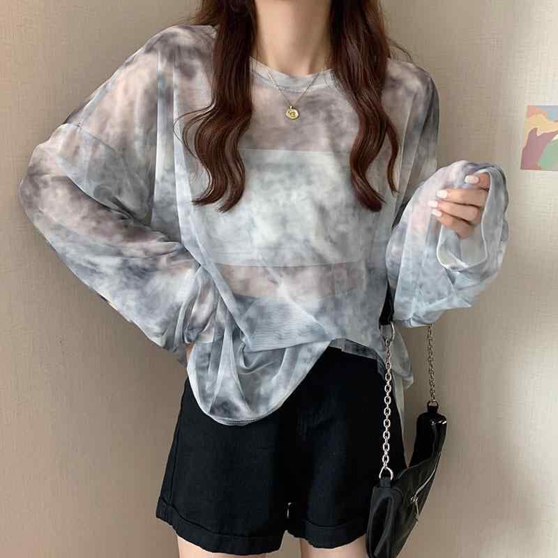 UVカットウェア レディース 薄手 接触冷感 長袖 シアー タイダイ柄 Tシャツ ポリエステル素材 ゆったり 日焼け対策 冷房対策 羽織り 普段使い アウトドア レジャー ブルー パープル
