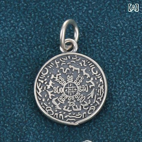 ペンダントトップ S925純銀 シルバー 九宮八卦牌 円形 丸型 十二支 チャーム DIY ハンドメイド 手作り アクセサリーパーツ レトロ 小型