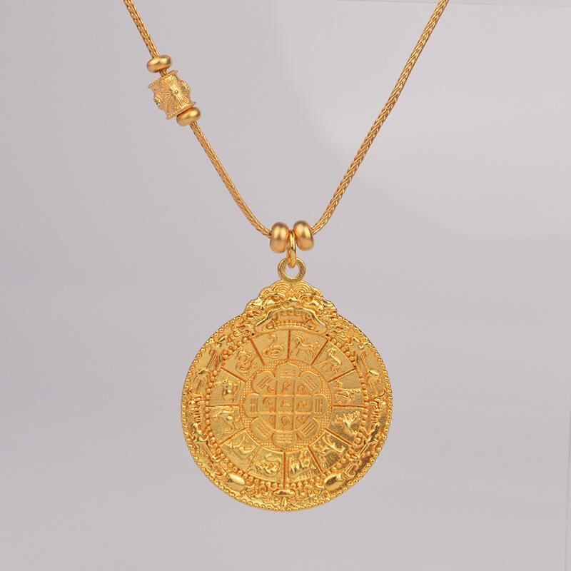 ネックレス 男女兼用 カップル 干支 十二支 九宮八卦 八卦牌 ペンダントトップ 金メッキ 銅製 ゴールドカラー 変色防止 中華風 民族調 エスニック レトロ 開運 縁起物