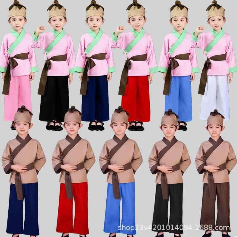 民族衣装 キッズ 男女兼用 中国古典物語 神筆馬良 愚公移山 大禹治水 守株待兎 農作業 発表会 演劇 学芸会 パフォーマンス コスチューム ポリエステル 軽量 ブラウン系 ピンク系 イベント