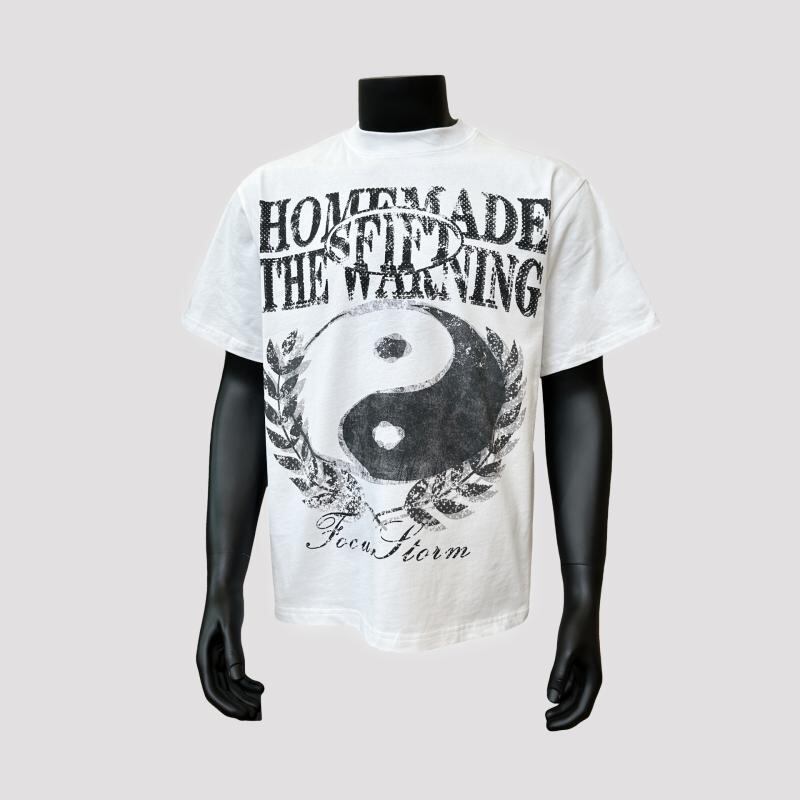 Tシャツ 太極八卦 レトロプリント 半袖 ゆったり クルーネック 中華風 エスニック ストリートファッション カジュアル 普段使い ホワイト ウォッシュブラック