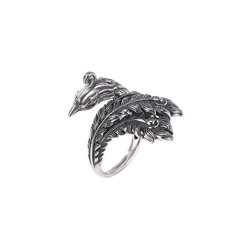 リング 男女兼用 フェニックス 羽根 モチーフ 銅製 アンティーク調 レトロ ヴィンテージ エスニック 民族風 オリエンタル オープンリング フリーサイズ 個性的なデザイン 普段使い カジュアルスタイル