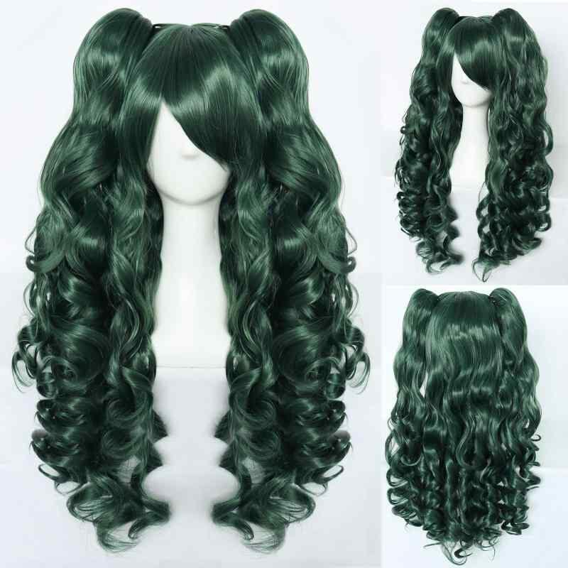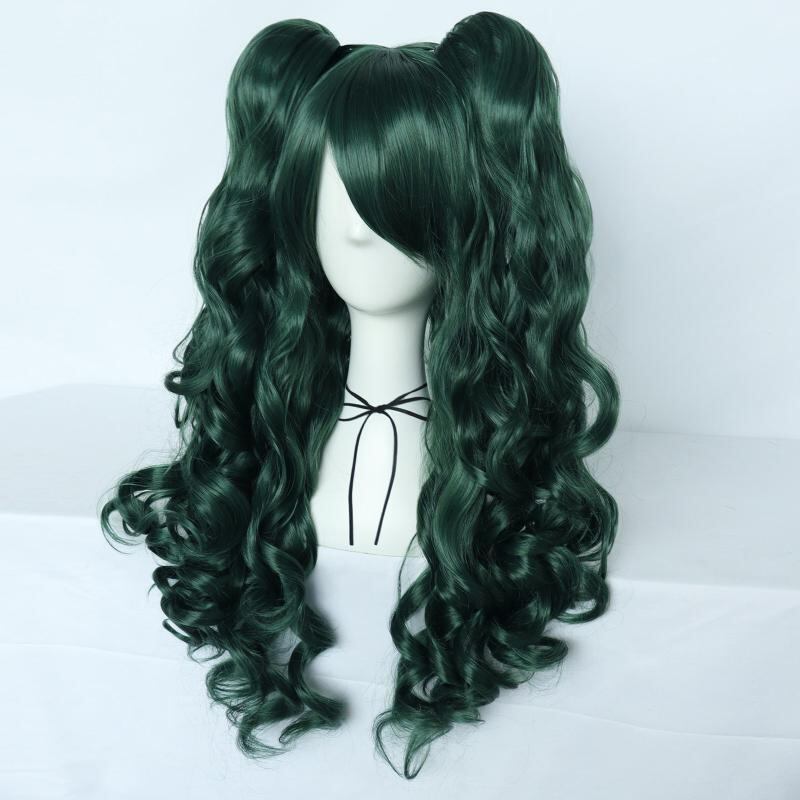 ウィッグ ユニセックス コスプレ アニメ ロリータ かわいい ツインテール ロングカール バンスクリップ 耐熱ファイバー 通気性 ナチュラル