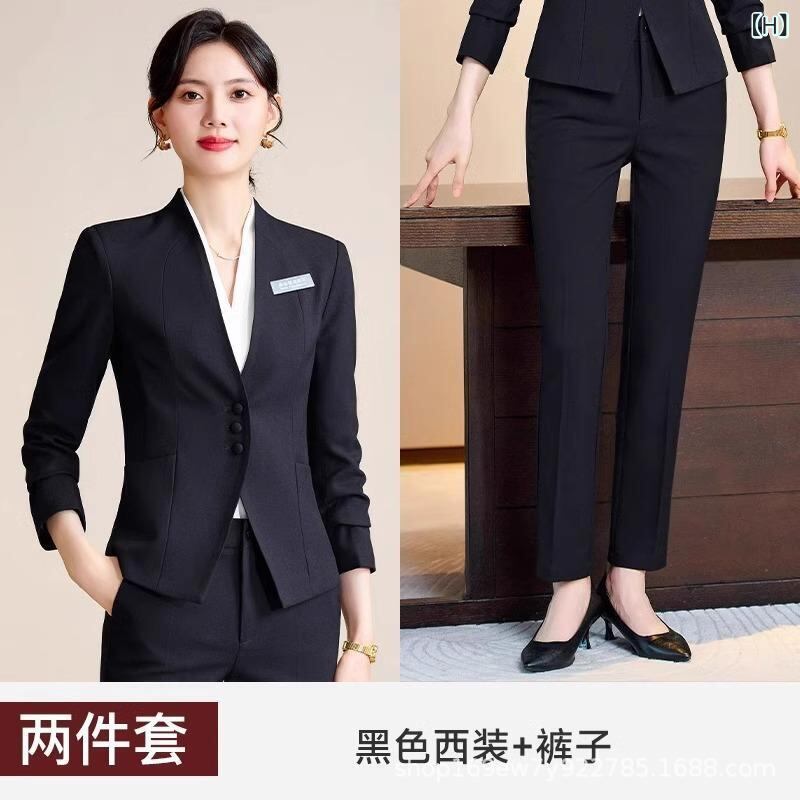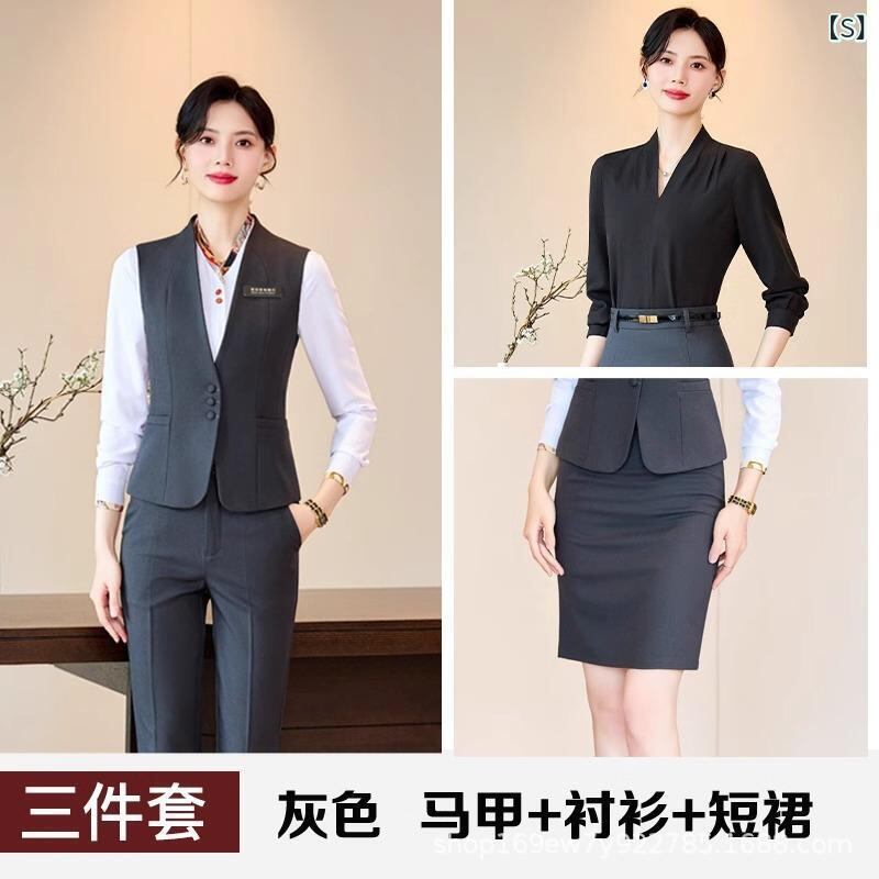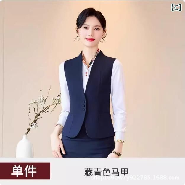 レディース ベストスーツ オフィスユニフォーム 事務服 受付 ホテル 美容師 宝石店 制服 吸湿速乾 伸縮性 Vネック ポリエステル ポリウレタン セットアップ グレー ブラック ネイビー