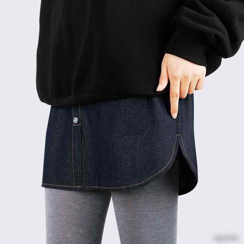 スカート デニム 裾 重ね着風 シャツ風 スウェット風 お尻カバー ヒップカバー Aライン ミドル丈 通勤 カジュアル 上品 ストレッチ 白 黒 紺