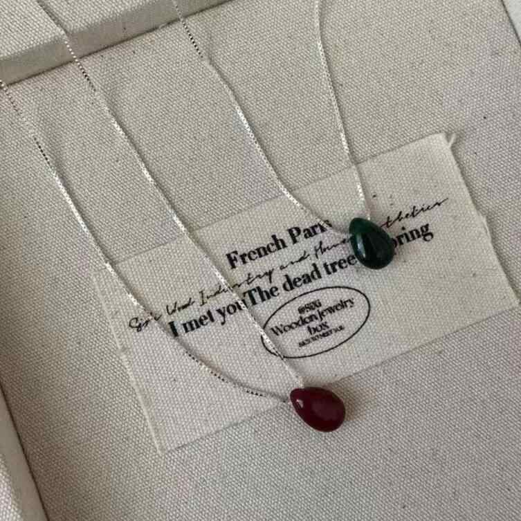 ・カテゴリ: ネックレス・主な素材: 銅・ペンダント素材: 樹脂・チェーン: ボックスチェーン・加工: めっき加工・形状: 水滴・長さ: 41cm~50cm・重さ: 約6g・スタイル: インスタ風、個性的・カラー展開: レッド、グリーン・対象: レディース