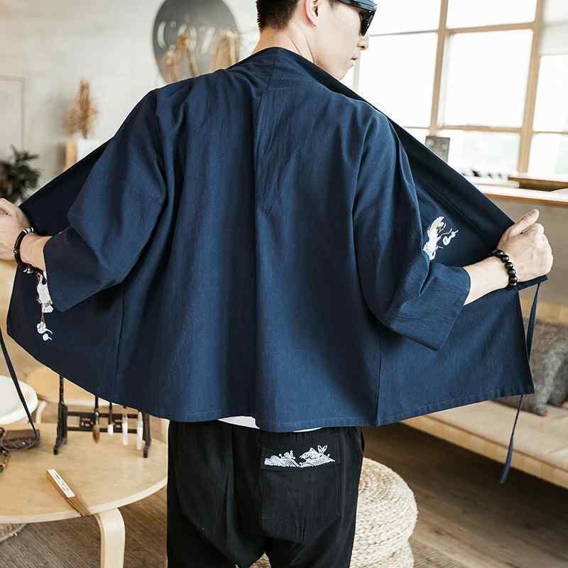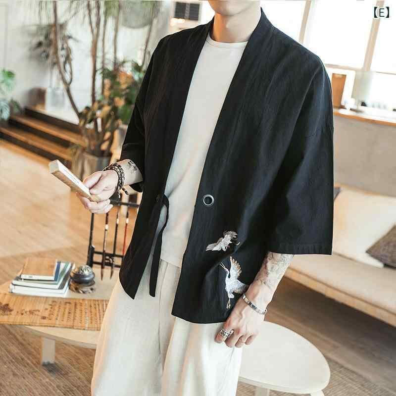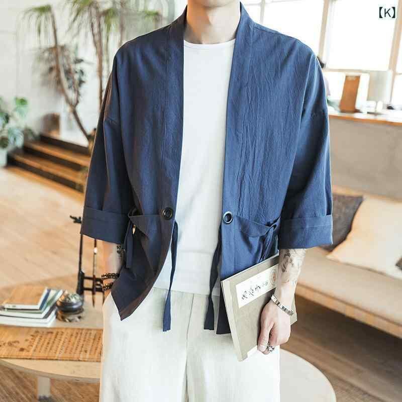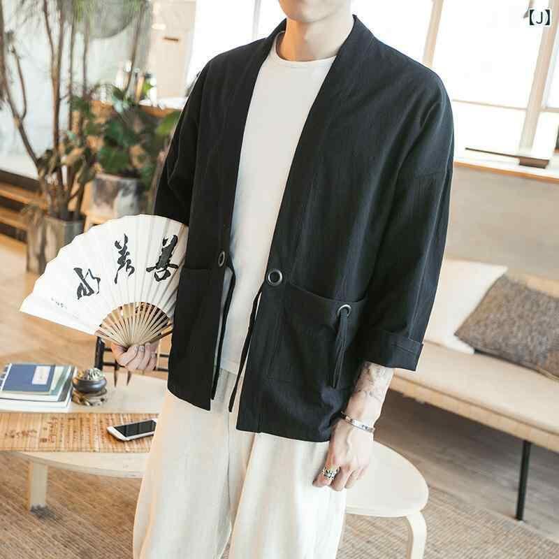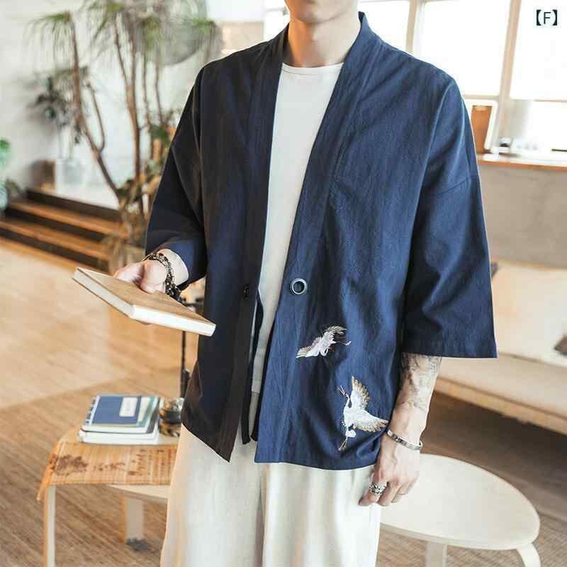 カーディガン メンズ 男性用 チャイナ風シャツ 唐装 羽織り風 ジャケット 7分袖 ポリエステル混紡 ブラック 黒 グレー ワインレッド ネイビー 刺繍 刺繡 中華風 レトロ