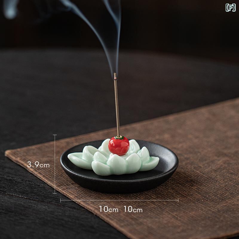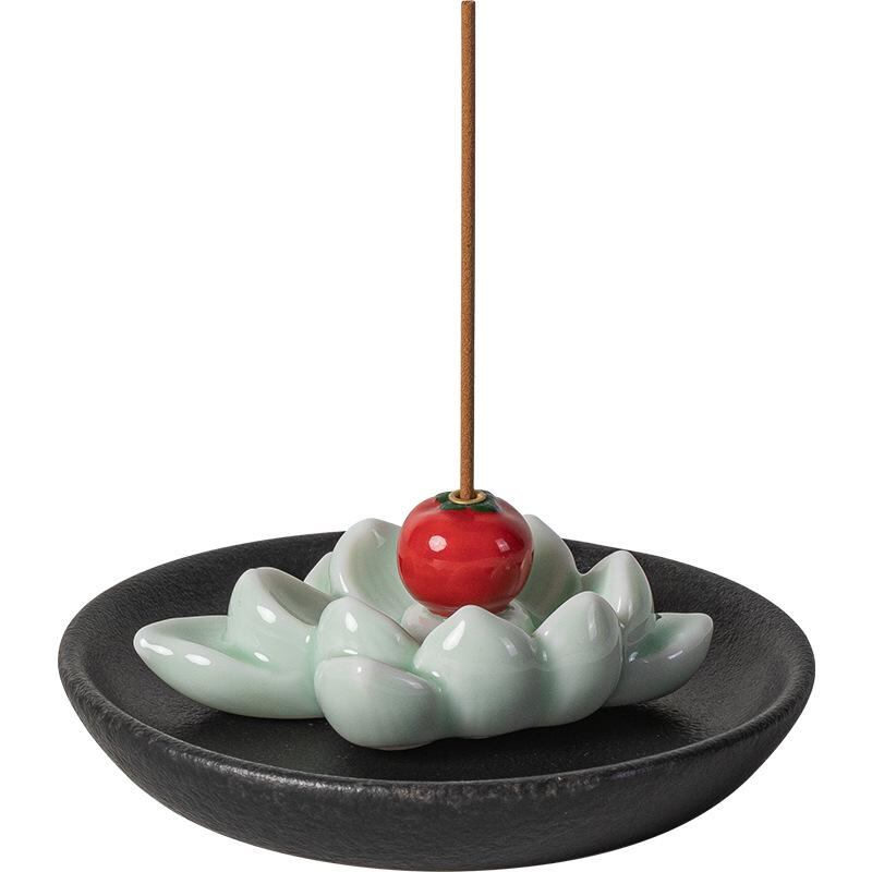 お香立て 卓上用 線香立て 柿モチーフ 蓮モチーフ 陶器製 禅スタイル 高級感 香炉 和風 インテリア アロマ 線香差し