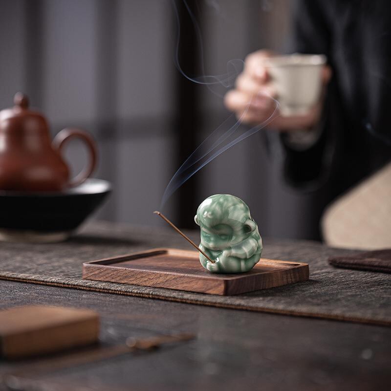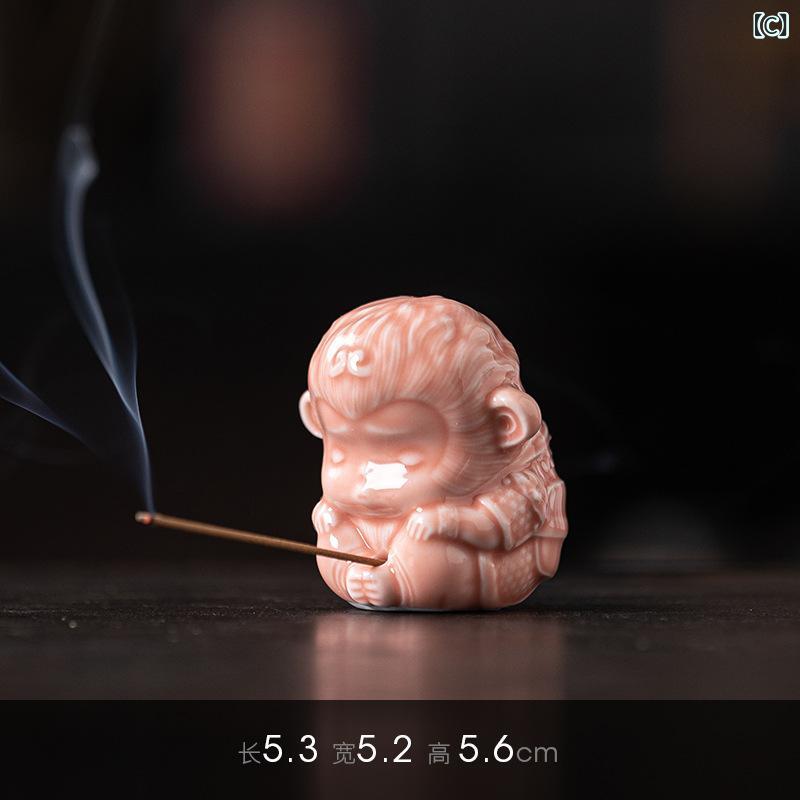 線香立て かわいい 猿モチーフ 陶器製 お香立て インセンスホルダー 卓上香炉 デスク用 癒し空間作り インテリア小物 オブジェ アジアン雑貨 茶道 和風装飾 リビング 寝室 書斎 グリーン ピンク ブラック