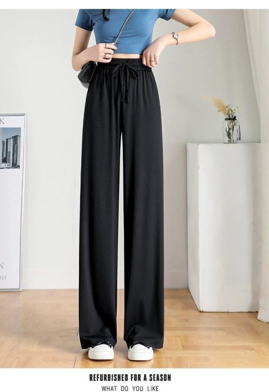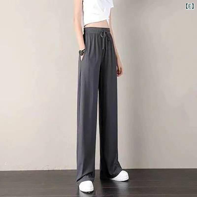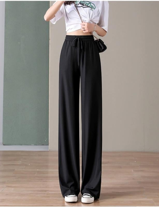 ワイドパンツ レディース アイス 薄手 夏 ハイウエスト 落ち感 ゆったり ストレート 大きいサイズ フルレングス 体型カバー 虫よけ 蚊よけ 接触冷感