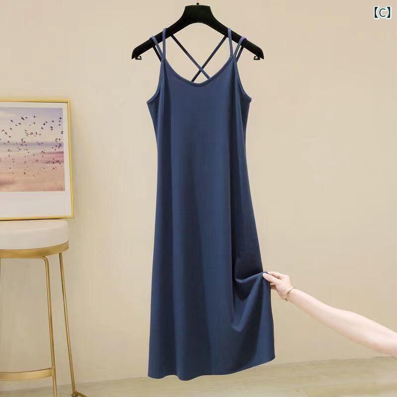 ワンピース レディース ゆったり 大きいサイズ 夏 アイス キャミソール ロング丈 無地 シンプル 体型カバー おしゃれ