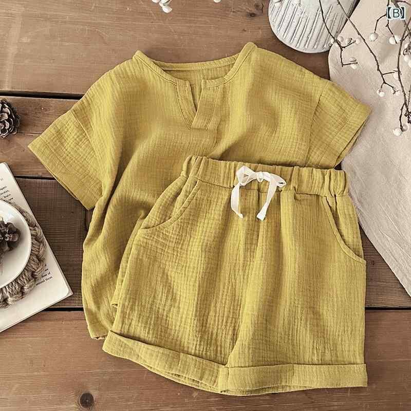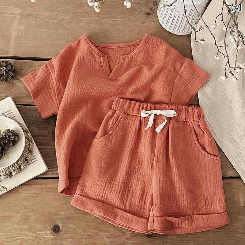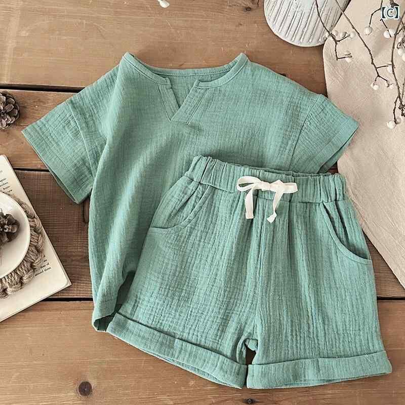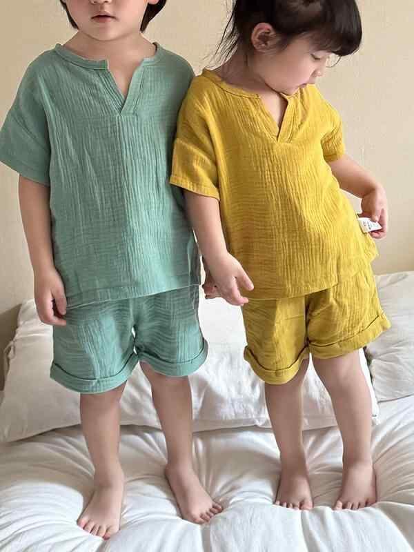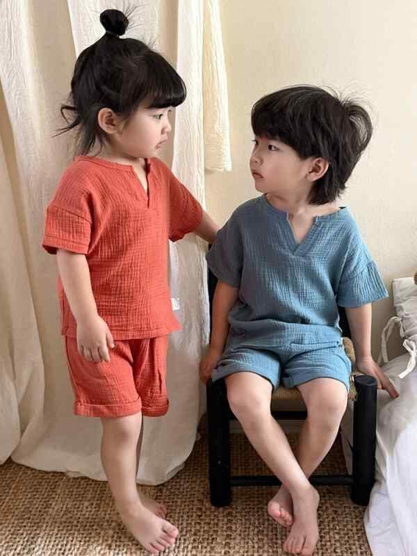 パジャマ ベビー キッズ 男の子 女の子 ガーゼ コットン クレープ 半袖 薄手 夏用 上下セット ルームウェア 部屋着 寝巻き 柔らかい 肌触り 通気性 吸湿速乾 涼しい 快適 カジュアル 幼児服