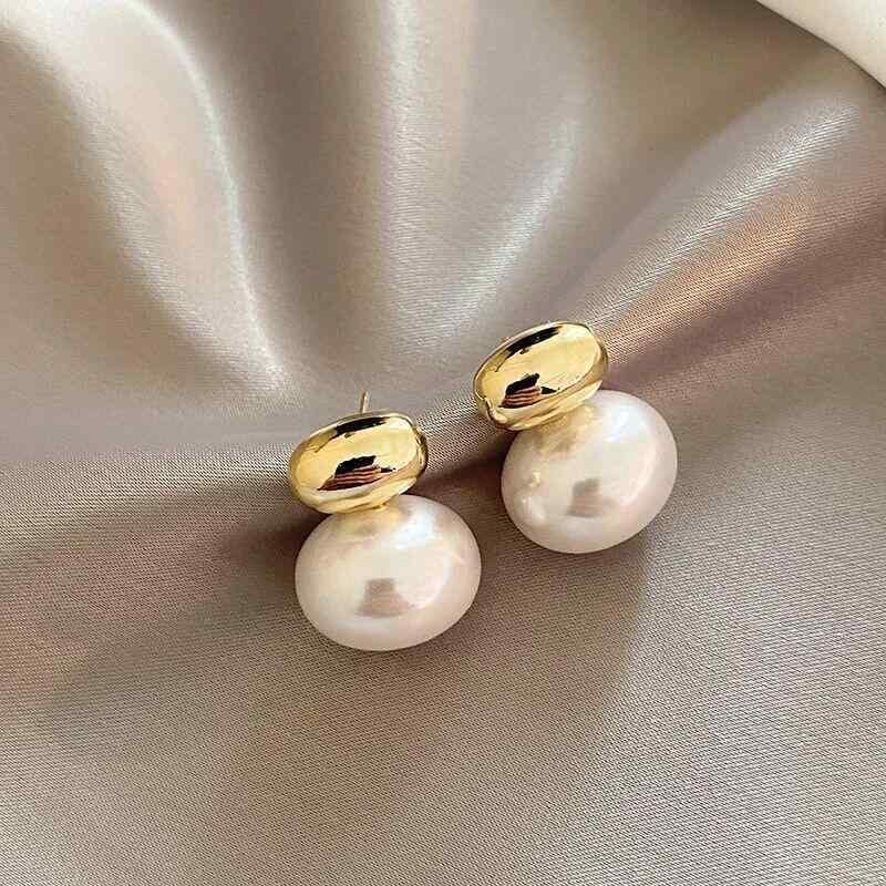 ピアス レディース 金属製 楕円 パール 立体デザイン 上品 個性的 ライトラグジュアリー 高級感 ゴールドカラー アシンメトリー 幾何学模様 ヴィンテージテイスト デイリーユース