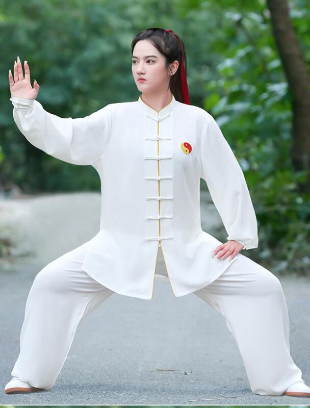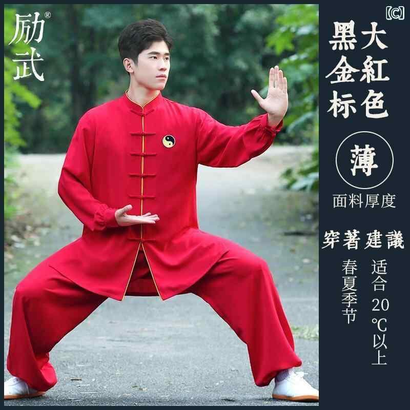 太極服 男女兼用 八段錦 太極拳 武術 練習着 試合用 上下セット 微伸縮性 通気性 軽量 ポリエステル素材 レッド ホワイト ブラック