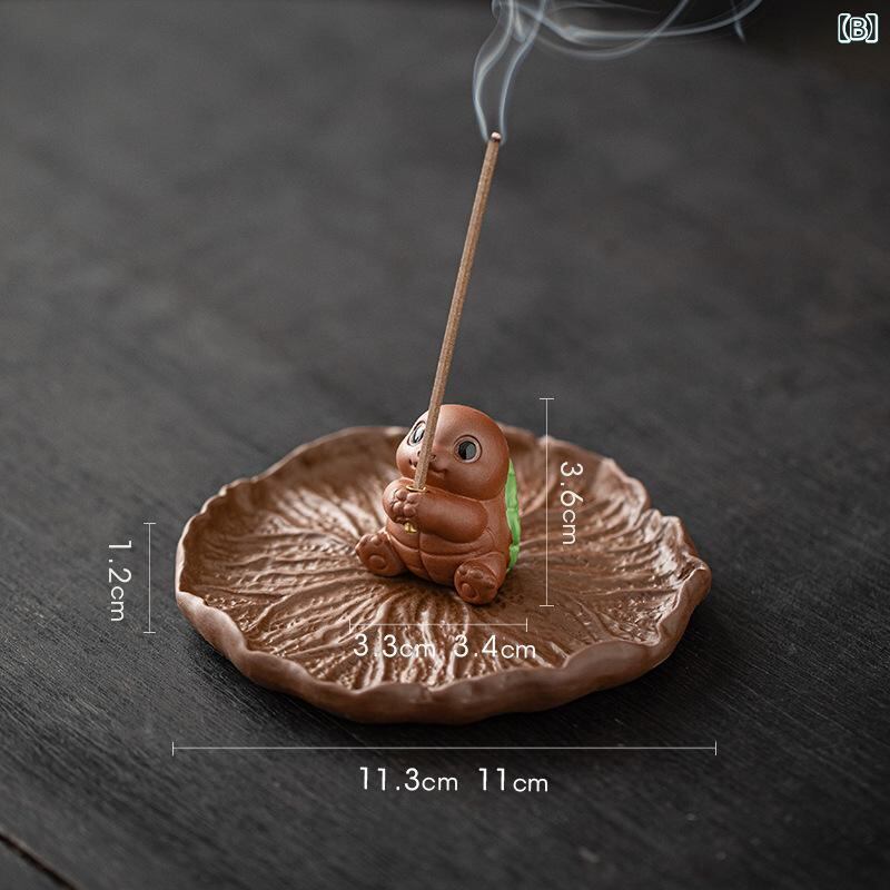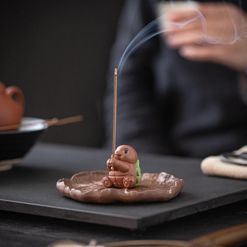 線香立て かわいい 亀モチーフ 紫砂 陶器製 香炉 お香立て 香立て 香皿 禅風 卓上用 癒やし リラックス アジアンテイスト インテリア 置物 和室 デスク オブジェ
