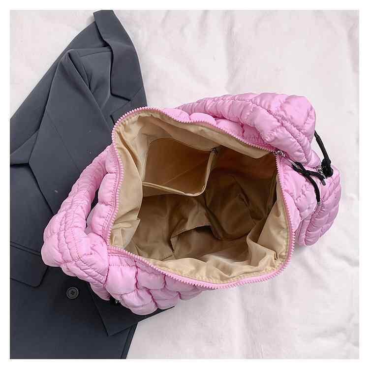 バッグ レディース クラウドバッグ ギャザー 餃子型 ワンショルダー 斜め掛け 大容量 中綿入り ふんわり 軽量 ナイロン ファスナー スマホポケット 肩掛け 鞄 日常使い