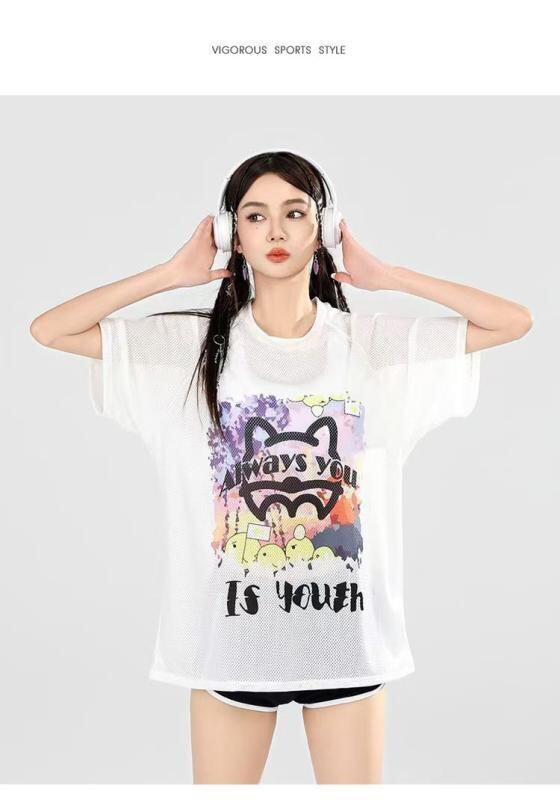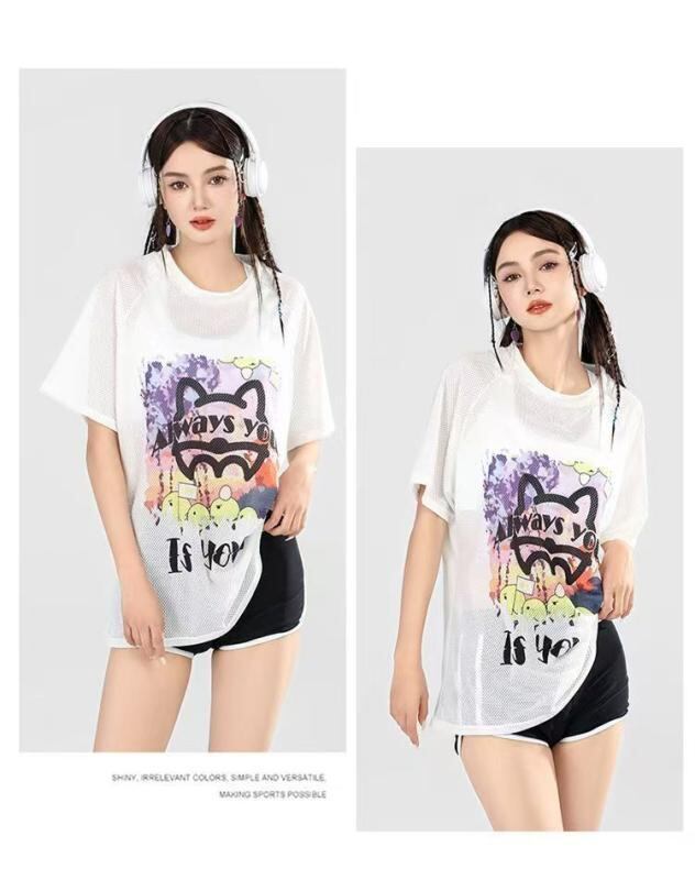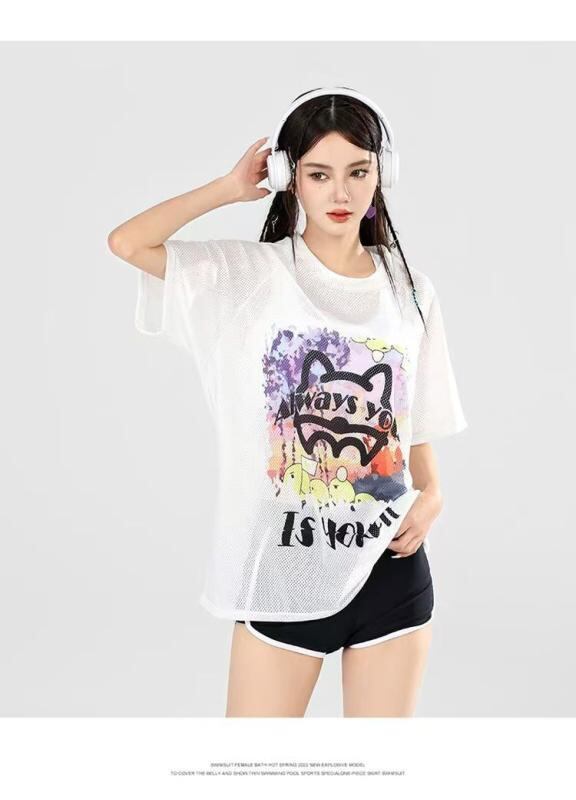 水着 レディース セパレート 3点セット ショートパンツ キャラクタープリント 半袖 スポーツタイプ 体型カバー プール ビーチ スイミング パッド入り ノンワイヤー ポリエステル素材 ブラック ブルー