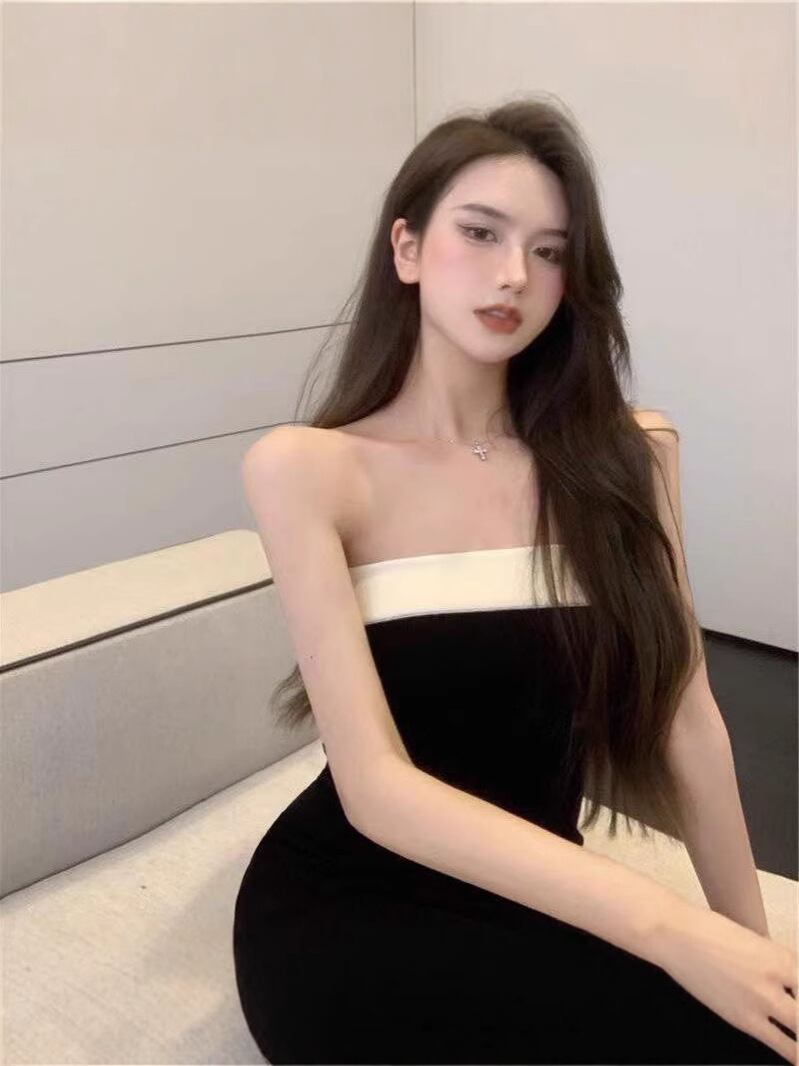 ワンピース レディース 大きいサイズ オフショルダー ノースリーブ スリムフィット バイカラー 配色切り替え タイトミニ丈 背中開き シンプル フェミニン セクシー ポリエステル
