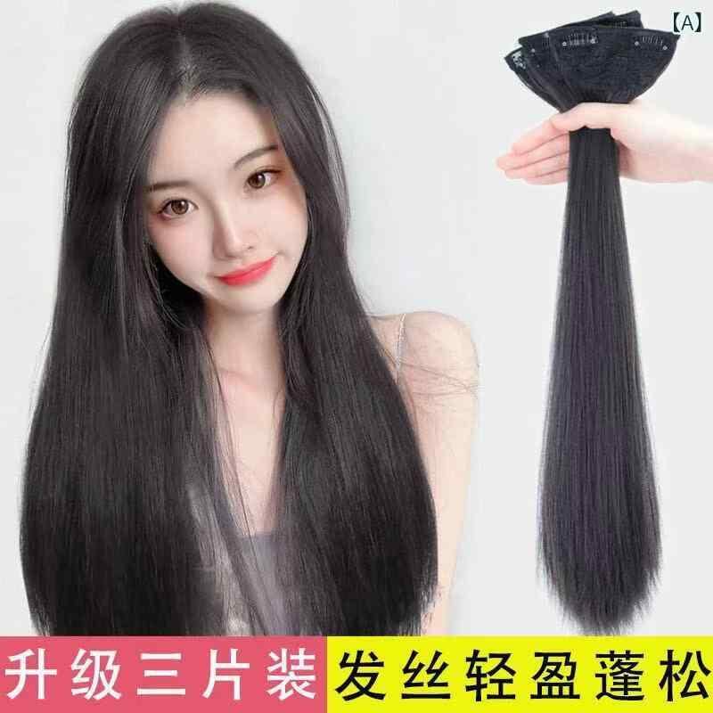 ヘアピース レディース ロングストレート 耐熱ファイバー 3枚セット 目立たない シームレス 自然な髪質 ボリュームアップ 増毛 エクステ 自然な黒 ブラウン系 60cm丈
