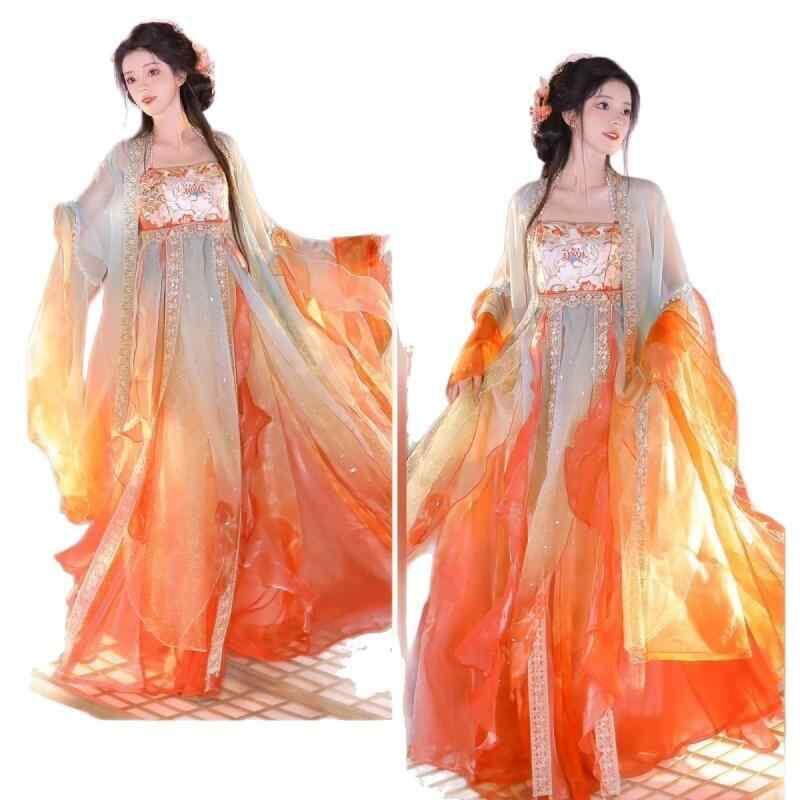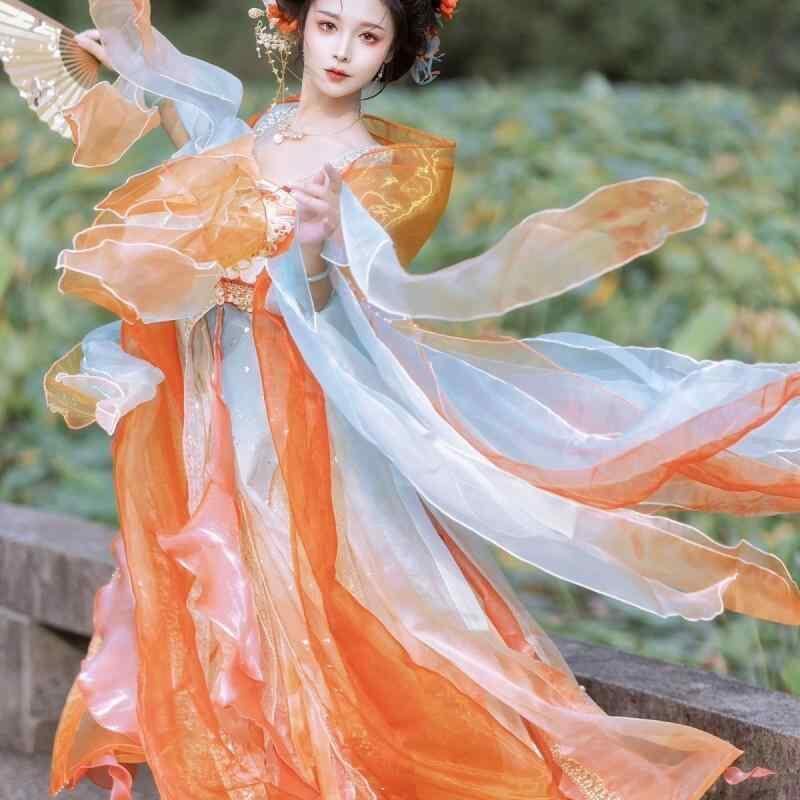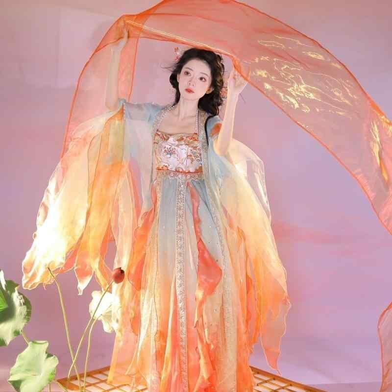 漢服 レディース 唐風 斉胸 豪華刺繍 蝶大袖 優雅 セット 夏物 イベント 舞台 発表会 撮影用 華やか エレガント 赤系 錦鯉柄 ロングスカート ワイドスリーブ ポリエステル レーヨン 民族衣装 フォーマル | cybercart
