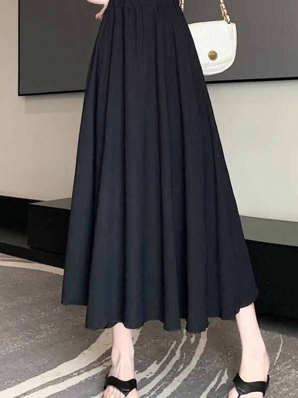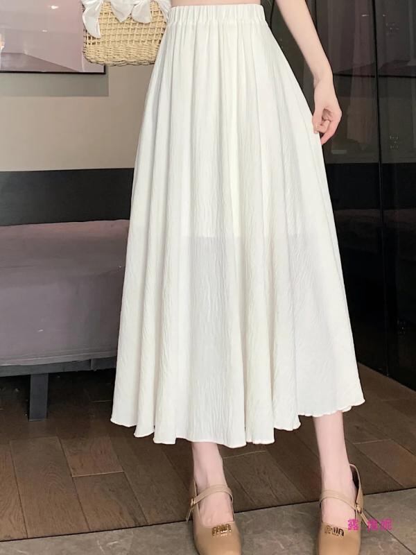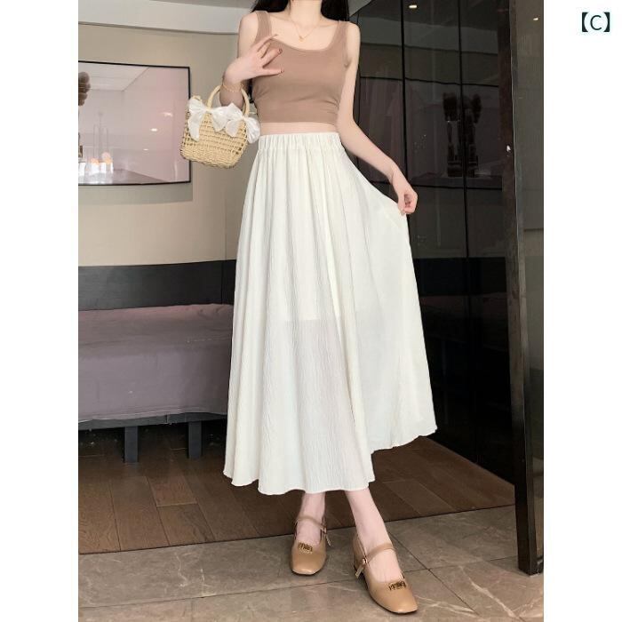 スカート レディース ポリエステル 麻ライク コットンライク オフホワイト アイボリー Aライン フレア ミモレ丈 体型カバー ゆったり 着痩せ 無地 カジュアルスタイル きれいめ 上品 夏用