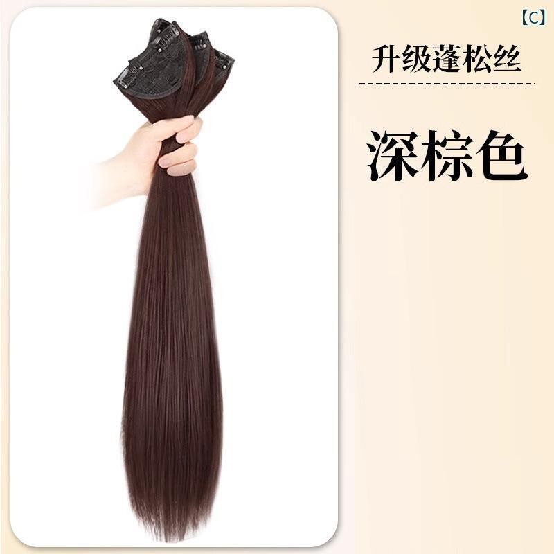 ヘアピース レディース 女性用 付け毛 エクステ ロング ストレート 3枚セット 自然な仕上がり シームレス 目立たない ふんわり ボリュームアップ 増毛 耐熱ファイバー 50cm 60cm ブラウン ブラック