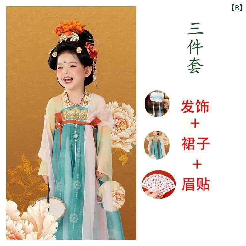漢服 女の子 中国風 プリンセスドレス 春夏秋 古風 優雅 華やか おしゃれ 高級感 薄手 ポリエステル 再生繊維 民族衣装 イベント 舞台衣装 コスチューム