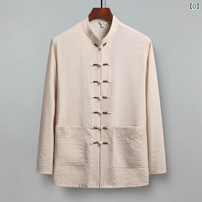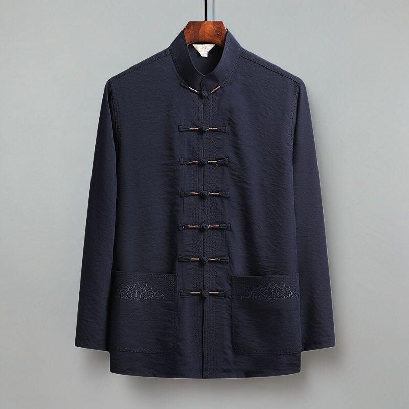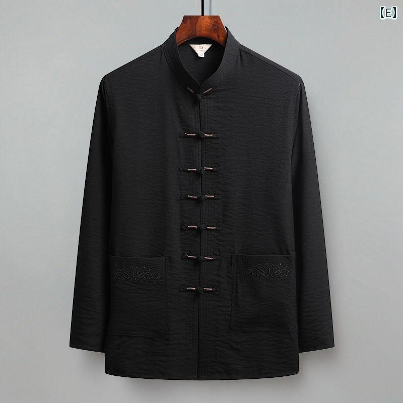 唐装 メンズ 中高年 祖父向け 中国風 中華風 長袖 薄手 接触冷感 ポリエステル混紡 太極拳 カンフー服 春夏秋 普段使い カジュアル リラックスウェア