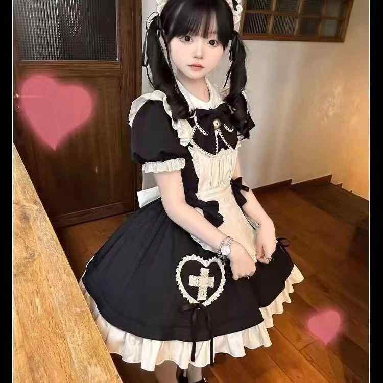 ワンピース レディース ロリータ かわいい メイド服 ウエストマーク エプロン エレガント コスプレ 衣装 シェニール スパンデックス 原宿系 日韓カジュアル