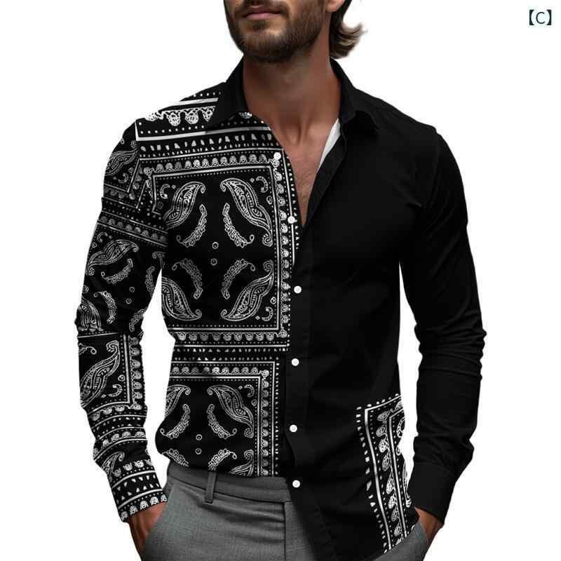 シャツ メンズ 軽量 高級感 ペイズリー柄 長袖 ゆったり ルーズフィット カジュアル 襟付き シングルボタン ポリエステル混紡 吸湿速乾 耐摩耗性 普段使い ビジネス