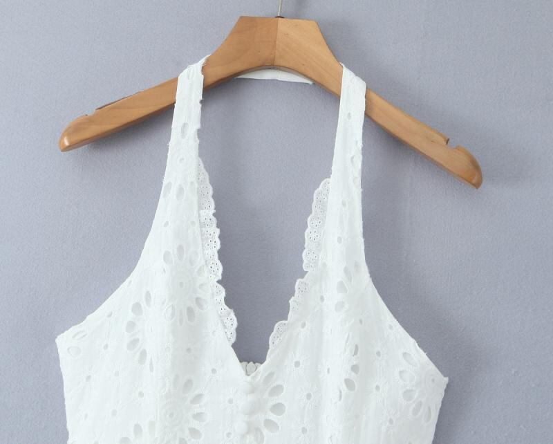 ワンピース レディース ホルターネック セクシー 純欲風 レース刺繍 スリムフィット ノースリーブ ミニ丈ドレス 夏 ストリートスタイル ポリエステル 無地 パッチワーク