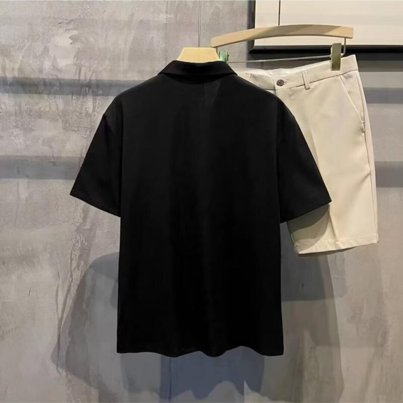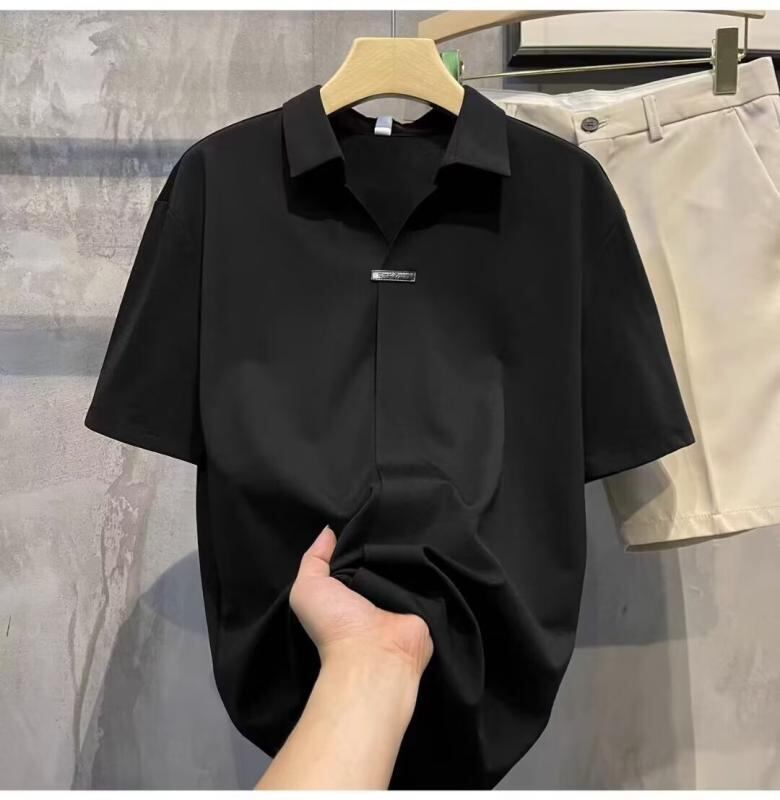ポロシャツ メンズ 半袖 Vネック 無地 薄手 シャツ ブリティッシュ ライトラグジュアリー レトロ ヴィンテージテイスト 夏 快適 イージーケア ポリエステル素材 カジュアル ルーズフィット