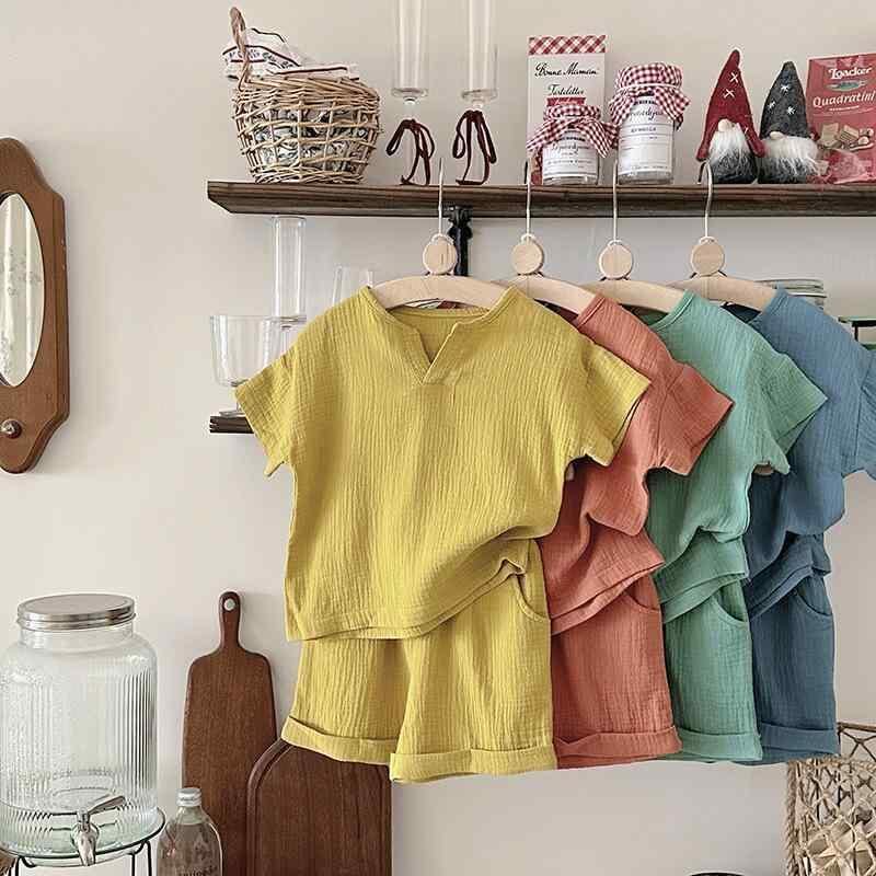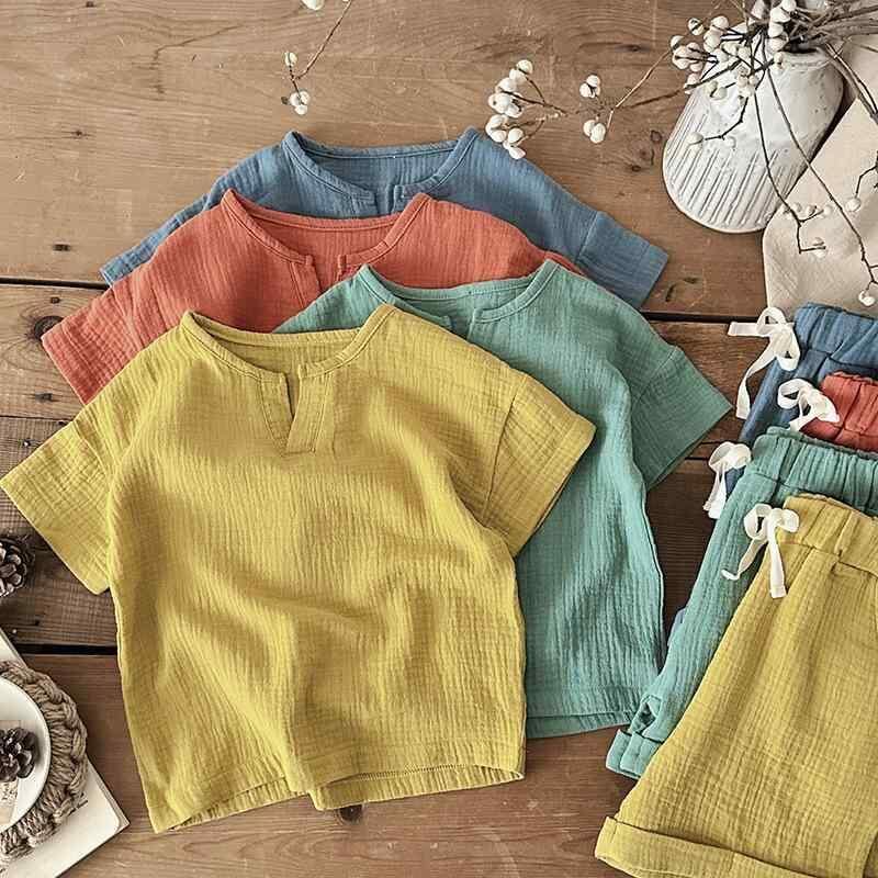 パジャマ ベビー 子供 キッズ 男の子 女の子 寝間着 ルームウェア 上下セット 綿100% コットン ガーゼ 薄手 半袖 短パン 柔らかい肌触り カジュアル キャラクター 花柄 夏用