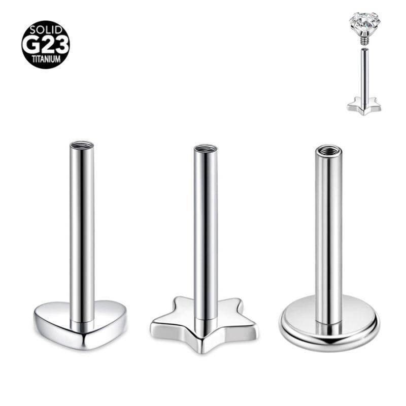 ボディピアス ユニセックス F136チタン製 ラブレットスタッド 内ネジ式 軸径1.2mm 6mm 8mm 10mm ハート スクエア スター ムーン ラウンド トライアングル ヘキサゴン 四角星 梅 シンプル シルバー ゴールド 鏡面仕上げ