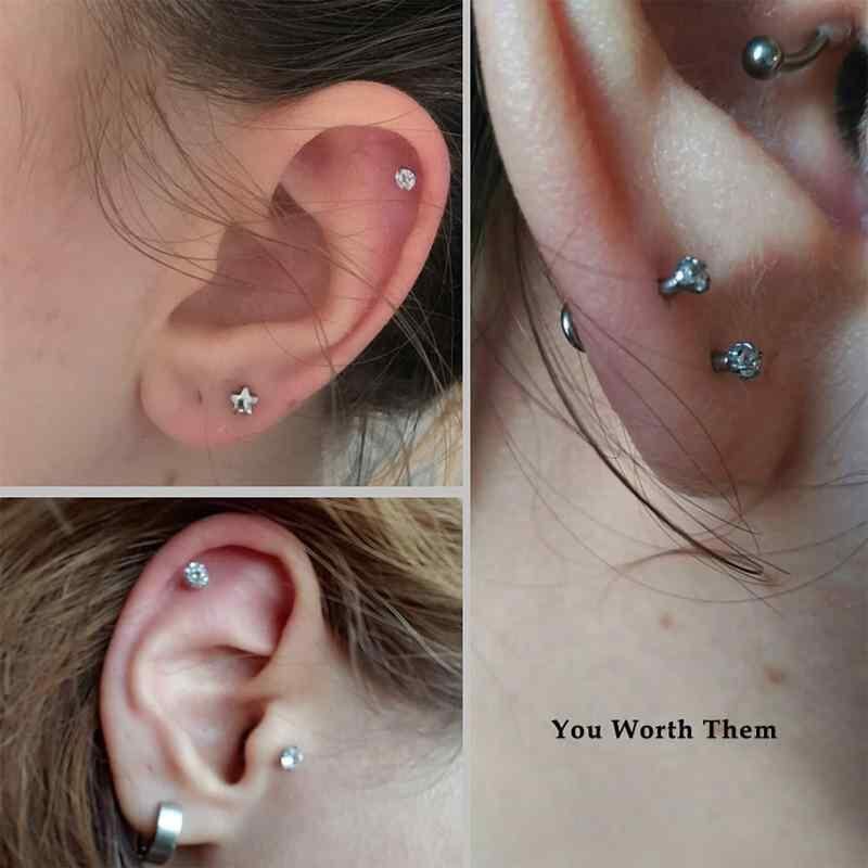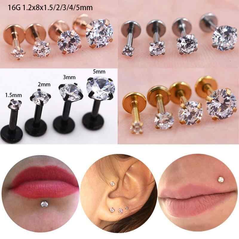 ボディピアス ユニセックス 316L ステンレス 内ネジ式 ラウンド キュービックジルコニア 軟骨ピアス リップピアス シルバー ゴールド ブラック ローズゴールド