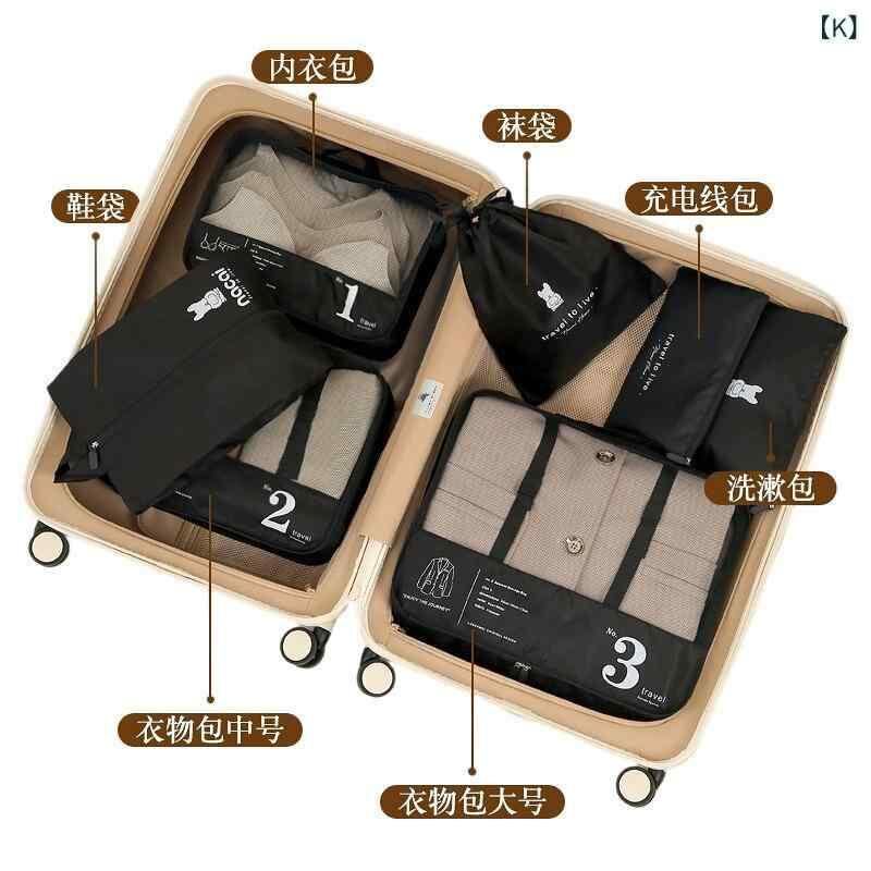 収納ポーチ トラベル 旅行用 衣類整理 スーツケース 大容量 多機能 圧縮タイプ 7点セット オックスフォード生地 撥水加工 出張 パッキング グレー ブラック ネイビー