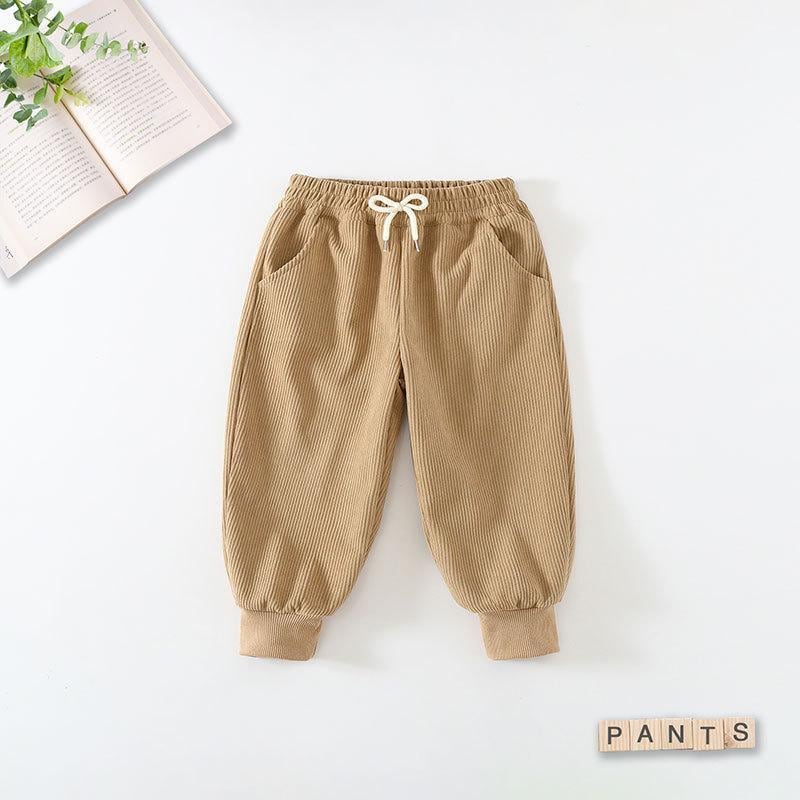 子供用 パンツ キッズ ユニセックス 男の子 女の子 コーデュロイ 長ズボン ゆったり ジョガーパンツ 綿 コットン 柔らかな肌触り ウエストゴム 春秋 普段使い 無地 ブラック カーキ