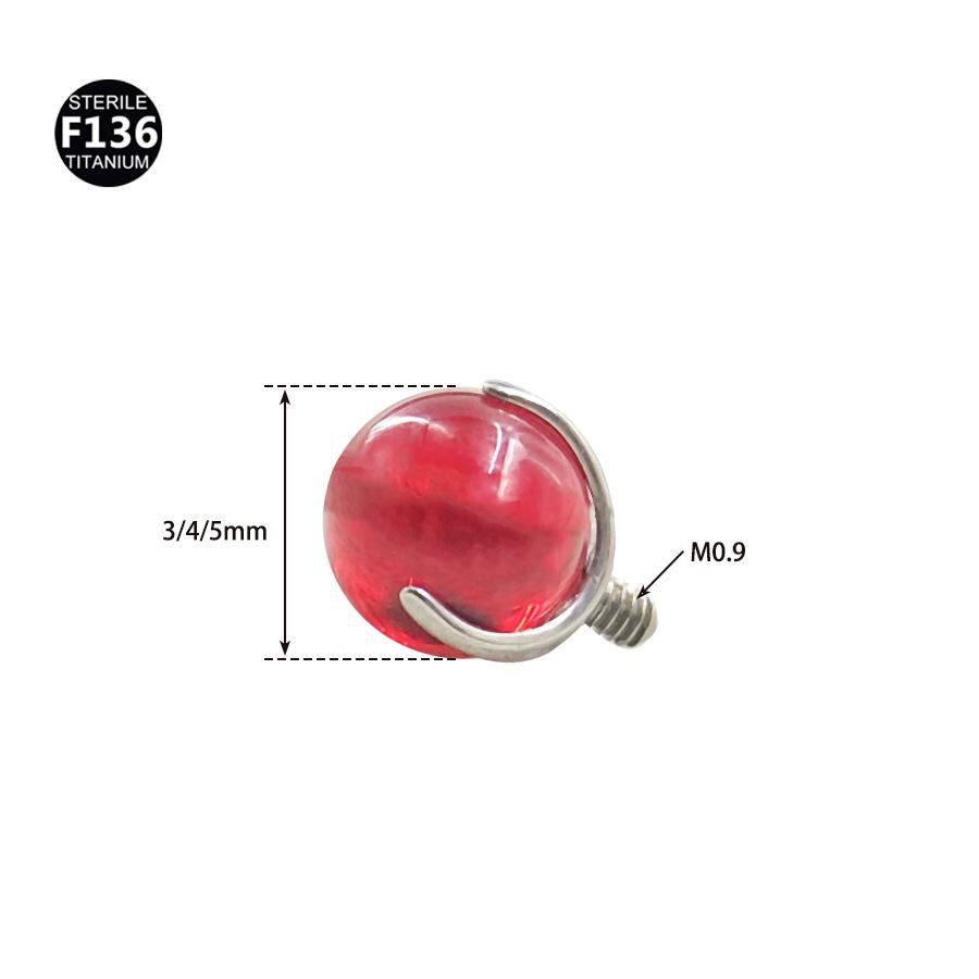 ボディピアス ユニセックス F136チタン製 丸型 強化ガラスボール ヘッドパーツ 0.9mmネジ リップピアス タンピ 耳用 3mm 4mm 5mm シンプル