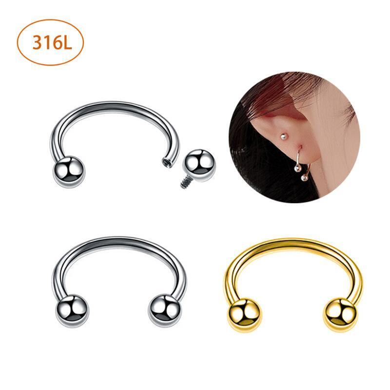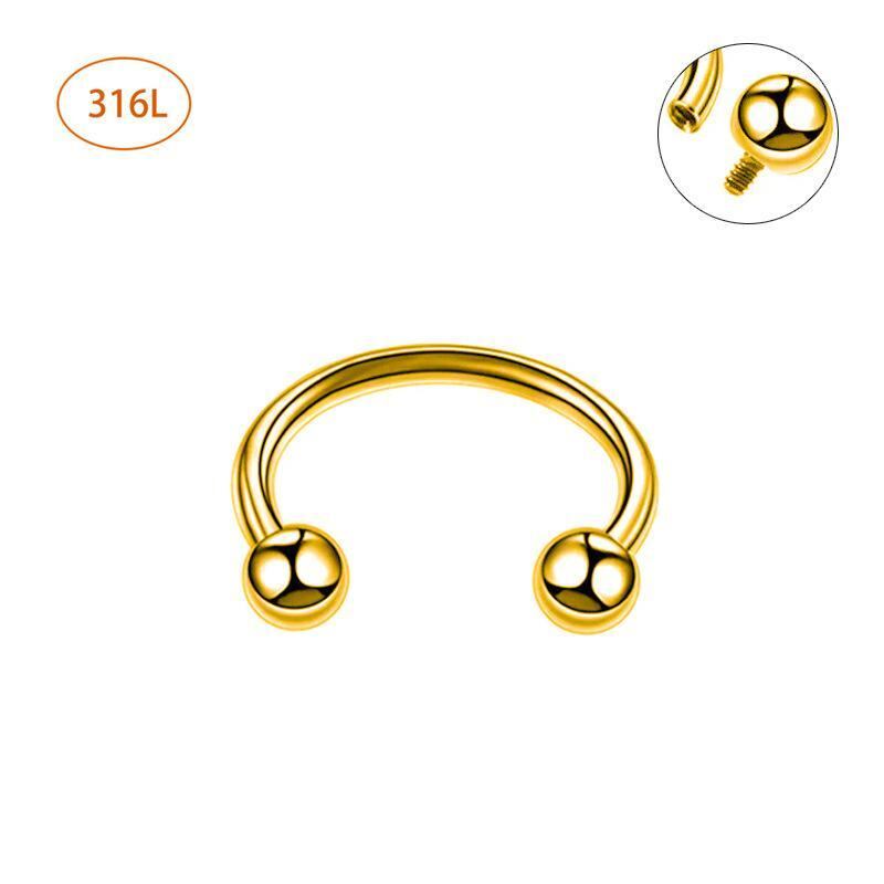 ボディピアス ユニセックス ステンレス インターナル スレッド C型バーベル 鼻ピアス 唇ピアス 軟骨ピアス 1.2mm 1.6mm ゲージ 8-14mm シャフト ボディピアスパーツ シルバー ゴールド