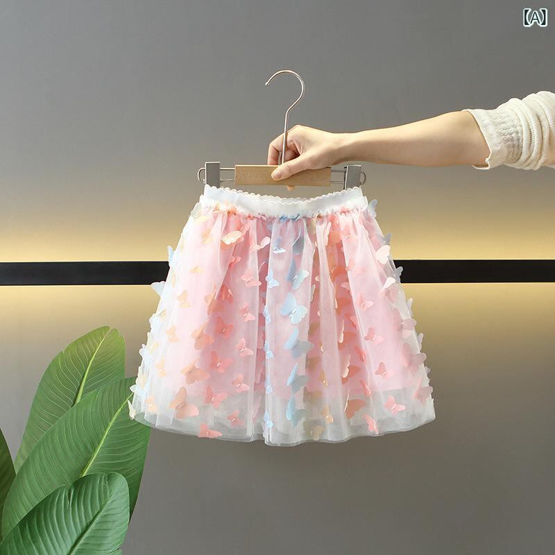 スカート 女の子 キッズ ジュニア チュール 半身スカート ふわふわ プリンセス 蝶々柄 おしゃれ かわいい 夏 ポリエステル素材 お出かけ 発表会
