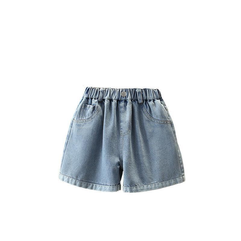 デニム ショートパンツ 女の子 ジュニア カジュアル おしゃれ 外出着 綿素材 柔らかな肌触り ハイウエスト ウエストゴム 無地 青 夏服