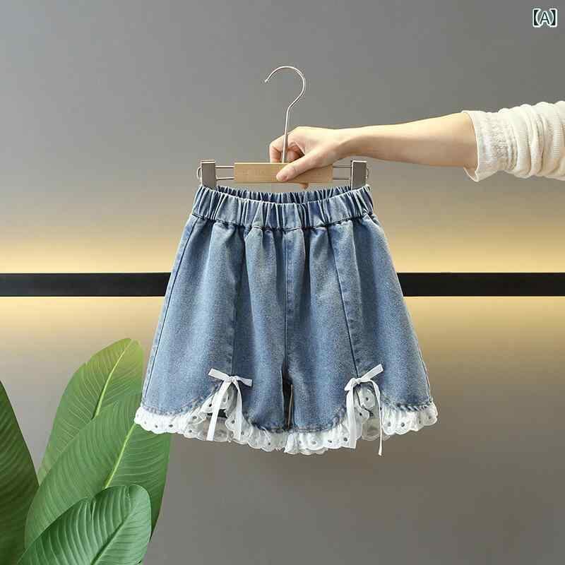 ショートパンツ 女の子 キッズ ジュニア デニム コットン 綿 夏物 フリル カジュアル デイリーユース 着回し おしゃれ トレンド ソフトタッチ 快適 ブルー 短パン