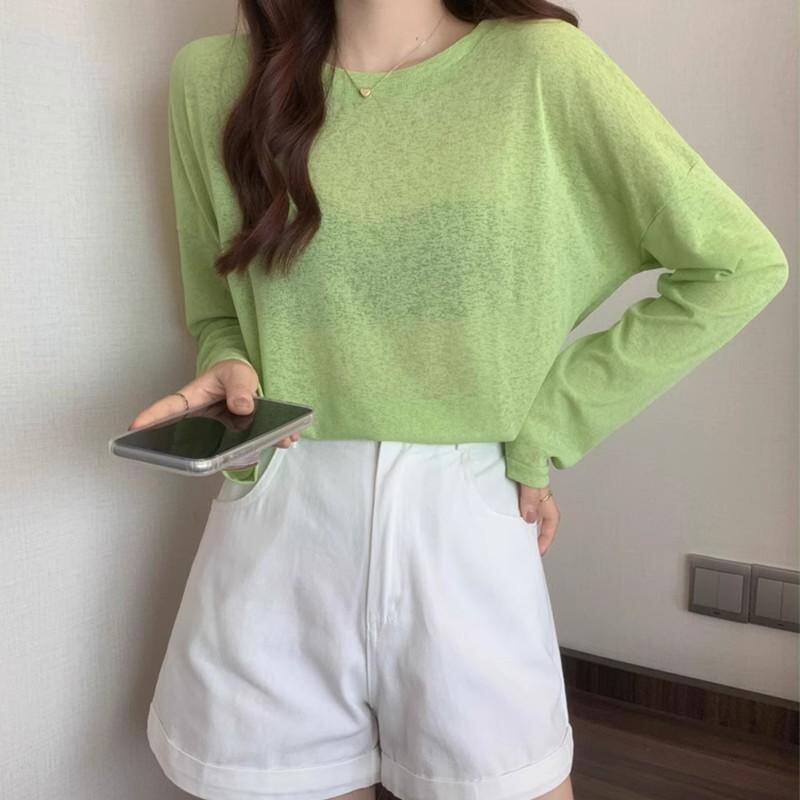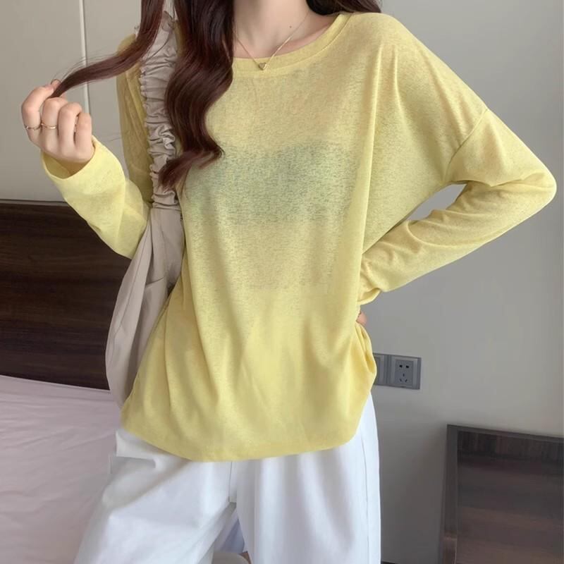 Tシャツ レディース 長袖 薄手 紫外線対策 UVカット UPF50+ 接触冷感 ひんやり プルオーバー インナーシャツ ゆったり ルーズフィット ミドル丈 夏用 ピンク 淡いピンク ポリエステル カジュアル