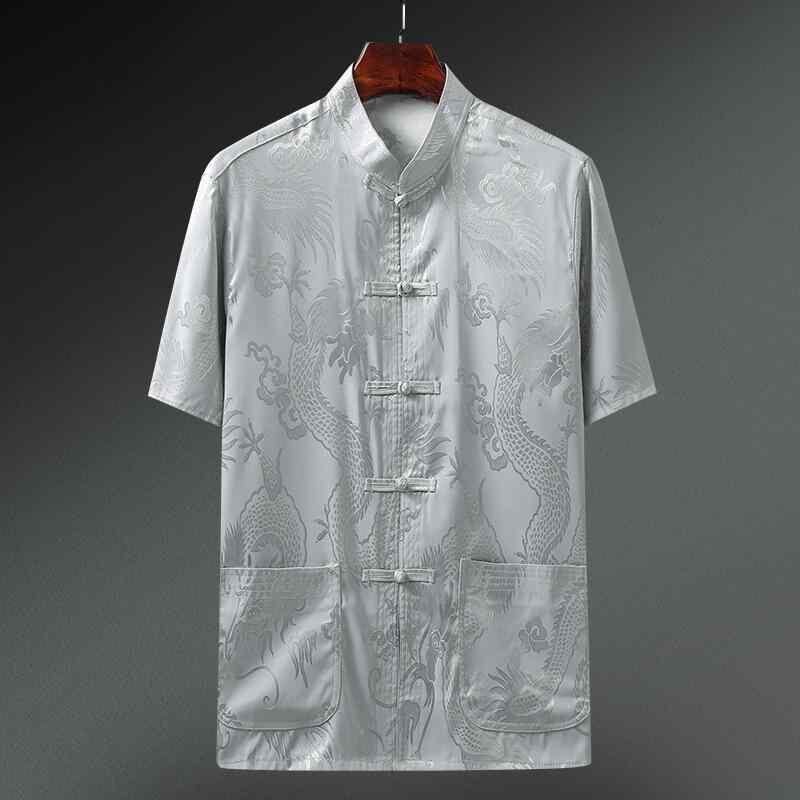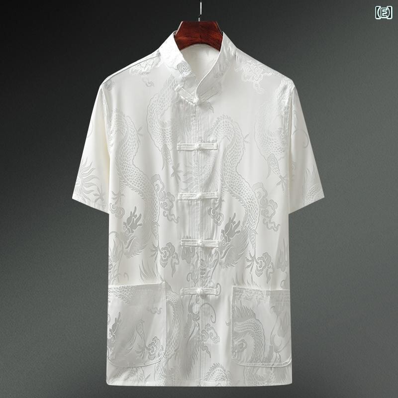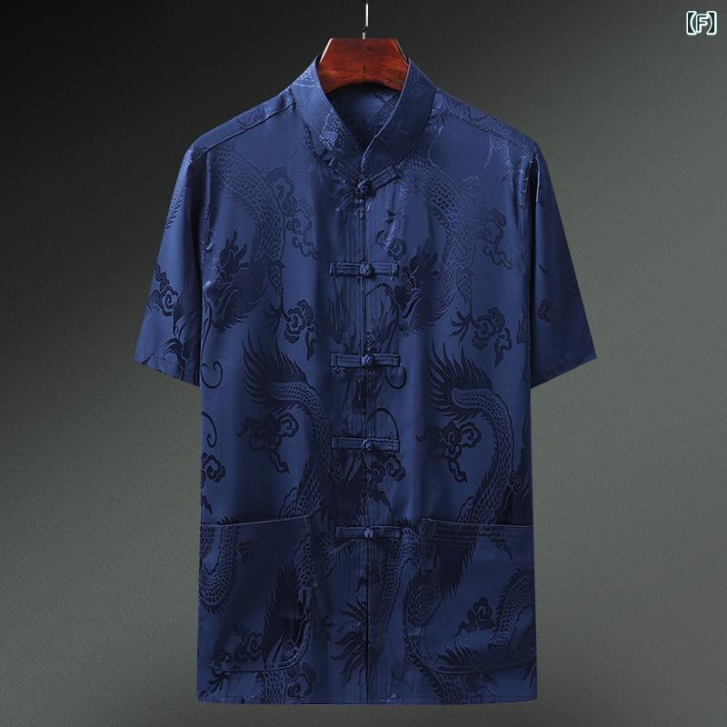 唐装 メンズ 男性用 中高年 夏 半袖 接触冷感 シルク調 ゆったり リラックスフィット 薄手 軽量 中国風 シャツ トップス カジュアル 普段使い 上品 しわになりにくい 吸汗速乾 ポケット付き