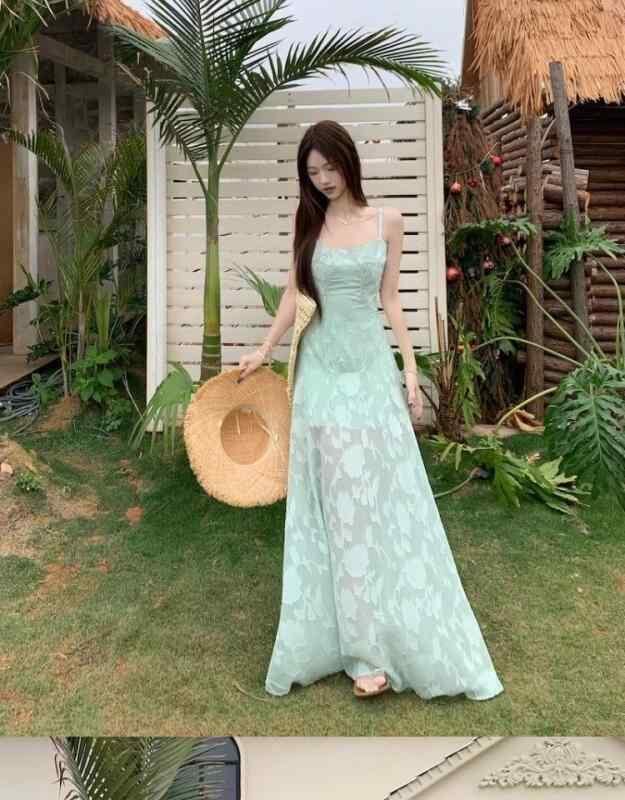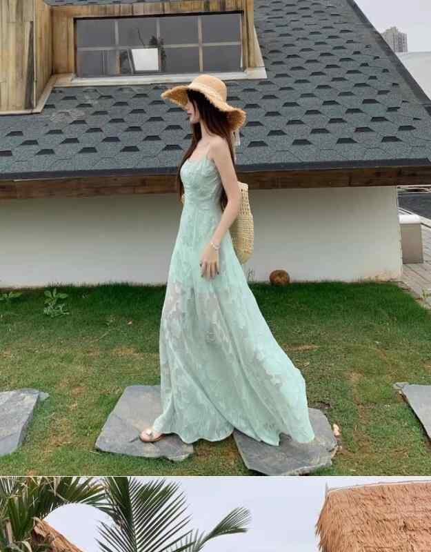 ワンピース レディース レース キャミソール ロング丈 ウエストマーク 細見え フレンチスタイル 夏 リゾート ビーチ 上品 エレガント ポリエステル Aライン ノースリーブ 清楚 かわいい